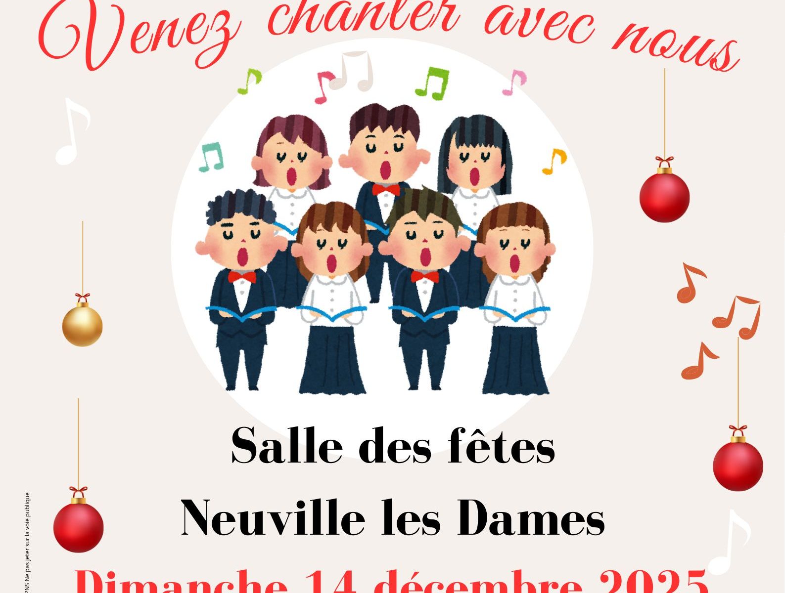 Le dimanche 14 décembre 2025 à 16h à la salle des fêtes de Neuville-les-Dames, venez chanter avec l’ensemble Les différents oiseaux.