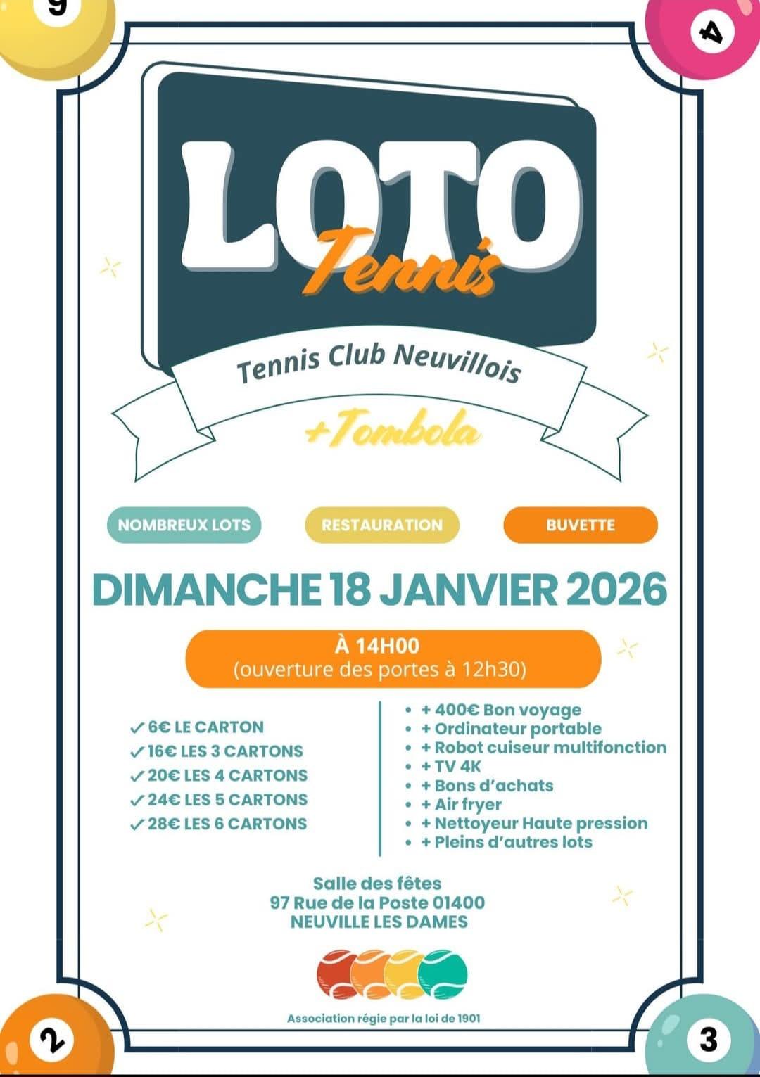 Dimanche 18 janvier 2026 à 14h à la salle des fêtes de Neuville-les-Dames.